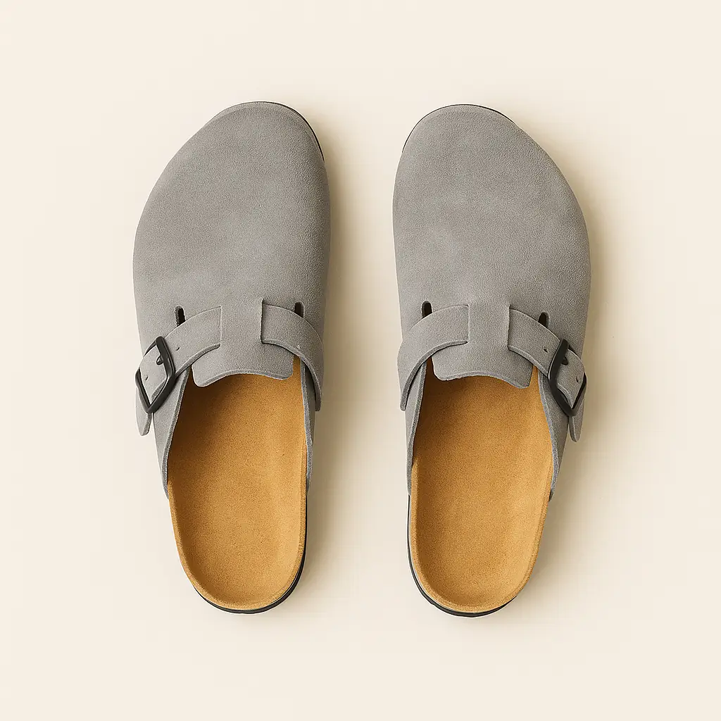 Pantoufles fabriquées à la main pour vous, avec un style élégant et confortable, de couleur gris clair.