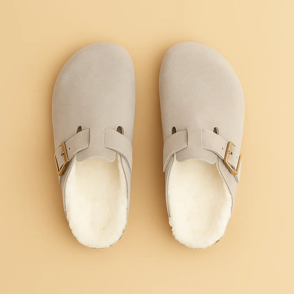 Pantoufle femme confort veloutée gris clair, doublure fourrée