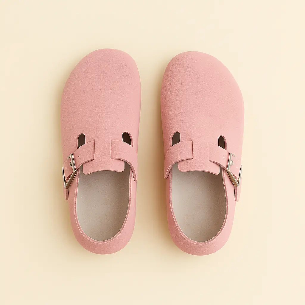 La teinte gris perle offre une douceur visuelle qui s’accorde facilement aux tons clairs comme foncés. Entièrement fermé, ce sabot protège talon et orteils et enveloppe le pied d’un toucher velouté.